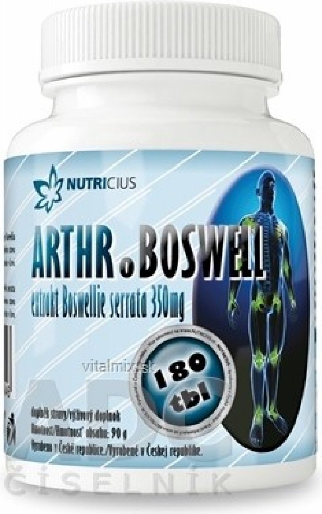 Arthroboswell je doplněk stravy ve formě tablet, který obsahuje extrakt z pryskyřice stromu Boswellia serrata, což je nízký strom rostoucí v severní Africe, Indii a na středním východě. Z pryskyřice Boswellia seratta se extrakcí získávají boswellové kyseliny, které příznivě působí při zánětech, otocích, bolestech kloubů a svalových úponů.