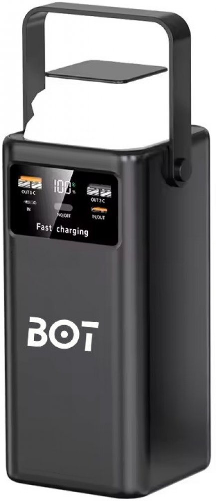 BOT powerbanka 22,5W HP2 100 000 mAh černáBOT powerbanka HP2 s kapacitou 100 000 mAh je ideálním řešením pro nabíjení mobilních telefonů a tabletů na cestách. Díky široké kompatibilitě a více výstupům – USB a USB-C – umožňuje pohodlné nabíjení různých zařízení současně. Přehledný LED displej zobrazuje aktuální stav baterie, takže vždy víte, kolik energie vám zbývá. Powerbanka je dostupná v elegant...
