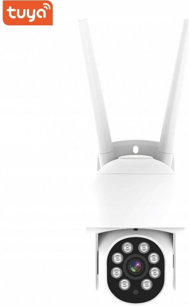 Chytrá venkovní bezpečnostní kamera, detekce pohybu, 4MP, rozlišení 2560×1440 px, WiFi, ovládání natočení kamery horizontálně 0°-320° a vertikálně 0°-100°, oboustranná komunikace, mobilní aplikace Tuya Smart/Smart Life, bílé provedení.
