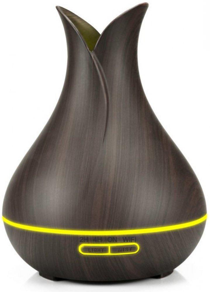 Chytrý aroma difuzér • objem nádoby 400 ml • 7 barev podsvícení • mobilní aplikace TuyaSmart • kompatibilní Amazon Alexa a Google Home • nastavitelný výstup mlhy • doba mlžení v kuse cca 12 hodin • WiFi • nastavení časování vypnutí a zapnutí • Certifikace (ISO9001 CE ROHS FCC) • barevná kombinace: tmavě hnědé dřevo