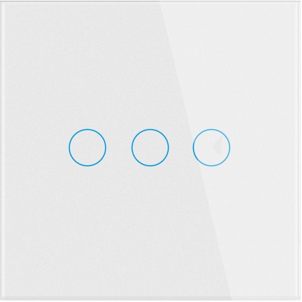 Chytrý vypínač pro osvětlení a elektroinstalaci, Zigbee, mobilní aplikace Smart Life / Tuya Smart, kompatibilní s Google Assistant nebo Amazon Alexa, tři tlačítka, napájení ze sítě, barva bílá.