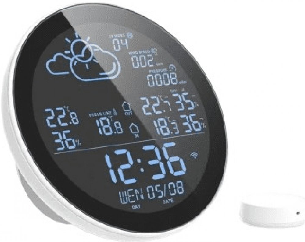 Chytrá meteostanice, měření teploty a vlhkosti, tlaku, UV indexu, rychlosti větru, 1x senzor, snadná instalace, WiFi 2,4 GHz, mobilní aplikace Tuya Smart / Smart Life.