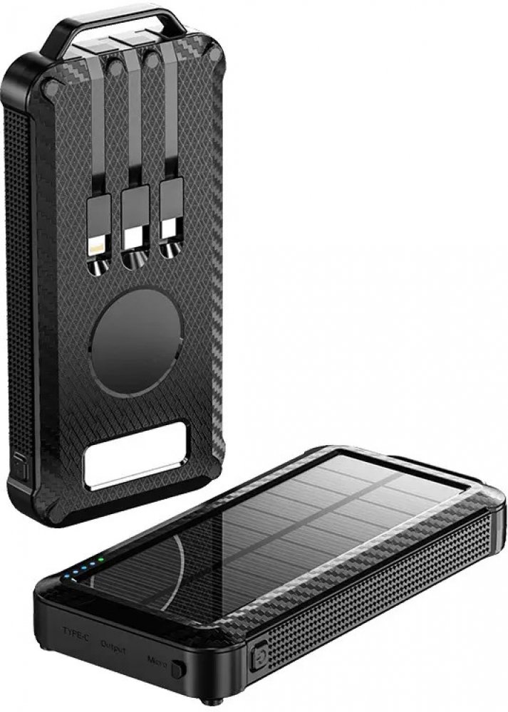 BOT Solární powerbanka SP4 1 panel černáSolární powerbanka se skládá ze dvou lithium-polymerových baterií o celkové velikosti 10 000 mAh. Pomocí 5 LED diod je možné sledovat zbývající kapacitu solární powerbanky. Díky dvěma USB vstupům lze zapojit rovnou dvě zařízení najednou. Tento produkt je vhodný rovněž, když jste na cestách, protože je vybavený voděodolnou ochranou IP67. Kromě toho lze na spodní straně nalézt světlomet.Lithium-polymerové baterie nacházející se v tomto produktu mají řadu certifikací a získaly ocenění třídy A, což dokazuje jejich vysokou kvalitu a stabilní chod, který se nezmění ani po třístém používání. Kromě toho zůstane Vaše zařízení v bezpečí, neboť obsahuje ochranu před podbitím nebo přebitím powerbanky. Solární powerbanka podporuje proud o velikosti až 2 A.Klíčové vlastnosti:Kapacita baterie zobrazena pomocí 4 LED diodSvítilnaOchrana proti podbití a přebitíTechnické parametry:Pracovní teplota: 0 °C 40 °Cpracovní vlhkost: 8 % 90 %Kapacita baterií: 10 000 mAhHmotnost: 375 gKonektiva: USB, USB-C a micro USB výstup (kabely), micro USB vstupVýkon solárního panelu: až 1 W, jedná se jen o dodatkový zdroj napájení pouze pro prodloužení životnosti baterie, jehož výkon je závislý na mnoha faktorech, hlavním zdrojem je napájení ze sítěVstupní a výstupní napětí: 5 V/2ADoba nabíjení: cca 4 hodiny: FCC, RoHS, UN38, MSDSBarvy: černá