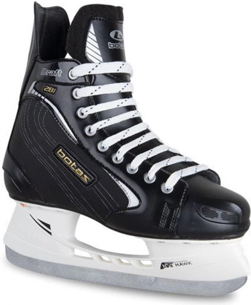 Je vybaven ochrannými prvky ergonomického střihu svršku s bočním zesílením. Vrch je zhotoven z kvalitní černé PA tkaniny s poutavým stříbrným dynamickým potiskem kombinovaný s odolným syntetickým materiálem a zesílenou patní částí imitující karbonový materiál. Nový anatomický jazyk pro lepší pocit z bruslení. Plastová špička potažená PA tkaninou spolehlivě chrání prsty nohou při nárazech. Vkládací stélka je tvořena plstěným dvoukomponentním sendvičem. Polštářování kotníků ve dvou různých tuhostech - DDP a vypolštářovaná podšívka ze syntetického veluru zajišťuje celkovou odolnost a zpevnění obuvi. Dodává se s černou PVC podešví a bruslí BOTAS FALCON Carbon Steel bílé barvy s kvalitním přichycením Cu nýty v patě.