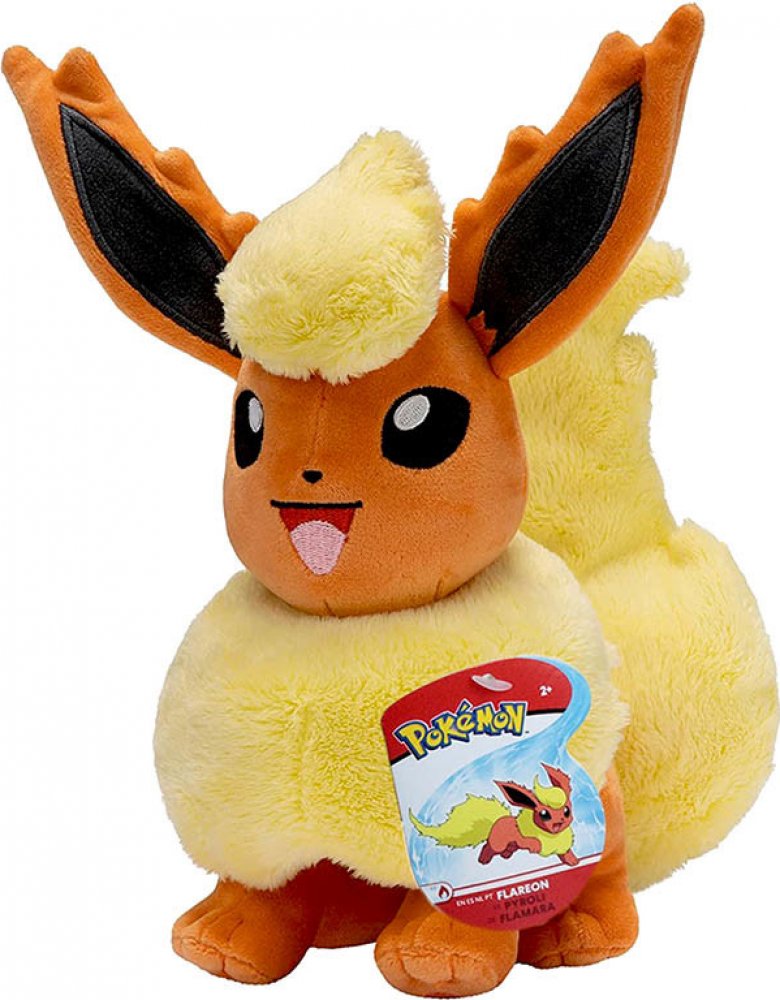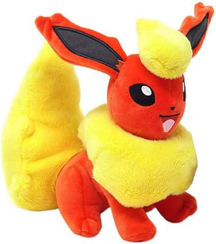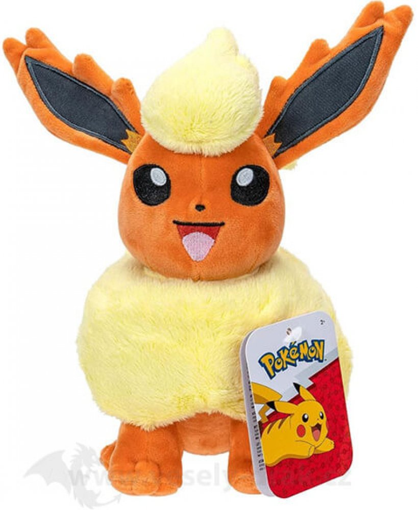 Plyšová hračka ohnivého Pokémona Flareon. Zhruba 20 cm vysoká, plyšová postavička Pokémona Flareon udělá radost všem dětem, které si ho oblíbili v animovaném seriálu. Udělejte jim radost ohnivým Pokémonem Flareon. Tento Pokémon se vyvijí z oblíbeného a roztomilého Pokémona Eevee.