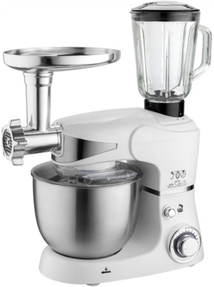 skleněný mixér o objemu 1,5 lNerezová mísa o objemu 5 litrů je navíc opatřena průhledným bezpečnostním krytem. Otvor v něm usnadňuje přidávání jednotlivých ingrediencií během přípravy. Základna mixéru má protiskluzové nožičky. Model je také vybaven funkcí zámku ramene ve zvednuté poloze.