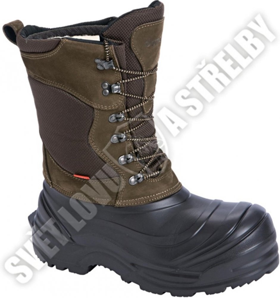 Díky speciální konstrukci a použití vhodných materiálů je obuv Yetti Pro jednou z nejlehčích a zároveň nejteplejších bot na našem trhu. Dolní voděodolná část obuvi je vyrobena ze speciálního, extra lehkého izolačního materiálu (kopolymer) Eva, který chrání Vaše nohy před zimou. Vícevrstevná a vyjímatelná vložka ze 100% přírodní vlny poskytne spolu se speciálně navrženým svrškem vynikající uživatelský komfort, a to i při velmi nízkých teplotách. K dostání v 7 velikostech.