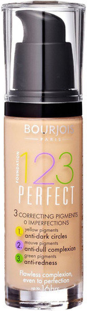 Dejte sbohem mdlé pleti a zarudnutí! 123 Perfect Foundation od Bourjois je podkladová báze, která vám umožní užívat si bezchybnou pleť a dokonalé líčení až po dobu 16 hodin. Jeho inovativní složení obsahuje tři pigmenty korigující pleť: (1) Žluté pigmenty redukují tmavé kruhy pod očima. (2) Fialovorůžové pigmenty zajišťují svěží pleť bez skvrn a pih. (3) Zelené pigmenty maskují popraskané kapiláry...