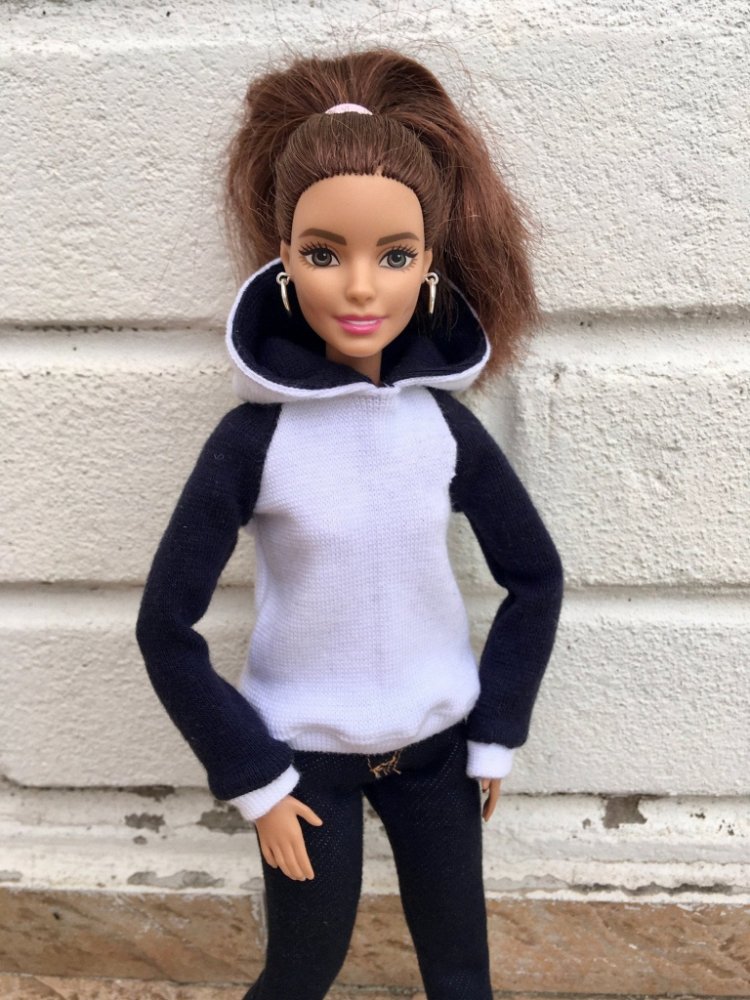 Zažijte maximální pohodlí a styl s touto mikinou s kapucí v barevném provedení bílá/námořnická modř určenou pro panenky v měřítku 1/6 a panenky Poppy Parker. Tato mikina se snadno zapíná na suchý zip a je nutností v šatníku každé panenky.