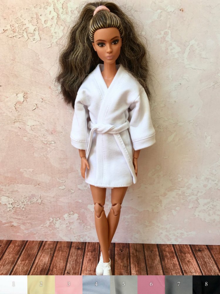 Dopřejte svým panenkám náš luxusní župan s poutky a páskem. Je k dispozici v několika barvách, aby vyhovovaly stylu každé panenky. Dopřejte svým panenkám dokonalý zážitek z hýčkání! Pro panenky v měřítku 1/6 nebo jiné podobné panenky.