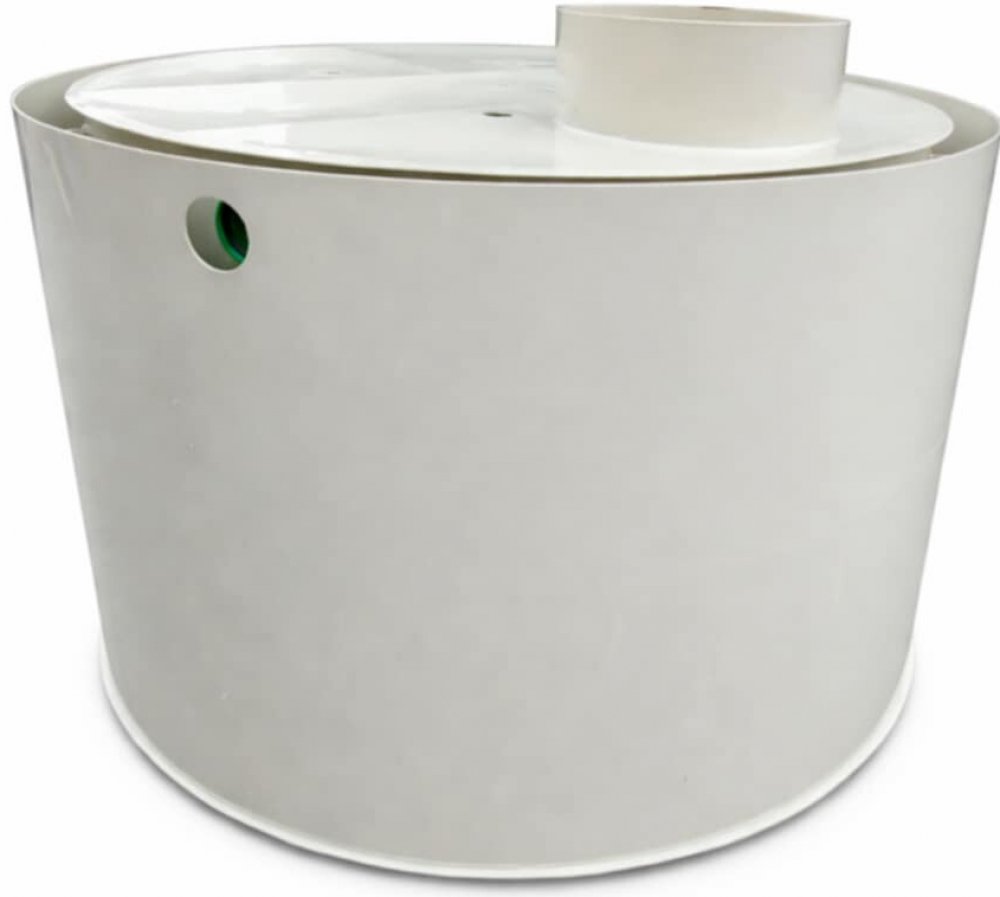 Dvouplášťová nádrž na odpadní vodu z odolného plastu - nerecyklovaného polypropylenu, která je vodotěsná. Slouží pro zachycení dešťových vod z objektů pro další využití doma či na zahradě. Nádrž má nátok a odtok.