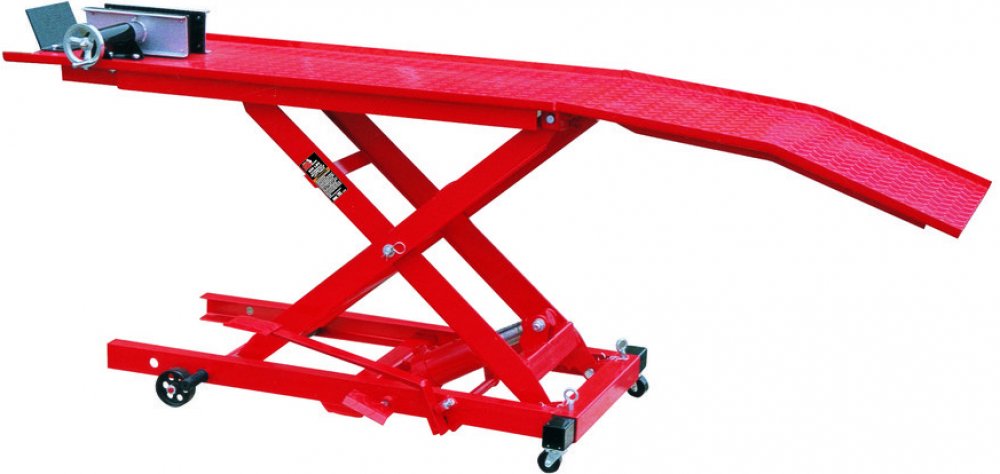 Nůžkový plošinový zvedák motorek s nožním - mechanickým pohonem TRE64007 Technická data: Rozměry stolu: 2170 x 490 mm Nosnost: 360 kg Min. výška: 220 mm Max. výška: 780 mm Hrubá hmotnost: 123,5 kg Hmotnost: 97,5 kg Rozměry balení: ...Nůžkový plošinový zvedák motorek s nožním - mechanickým pohonem TRE64007Technická data:Rozměry stolu: 2170 x 490 mmNosnost: 360 kgMin. výška: 220 mmMax. výška: 780 mmHrubá hmotnost: 123,5 kgHmotnost: 97,5 kgRozměry balení: 1510 x 670 x 260 mmMoto zvedák určený k opravám a údržbě strojů. Přístup na pracovní plošinu umožňuje nájezdová rampa, stabilitu motorky zajišťuje upínací element, do kterého se upevní přední kolo.Přesun zvedáku po dílně usnadňují transportní kolečka. Mechanický systém zvedání (nožní pumpa) zjednodušuje konstrukci zvedáku na maximální možnou míru.