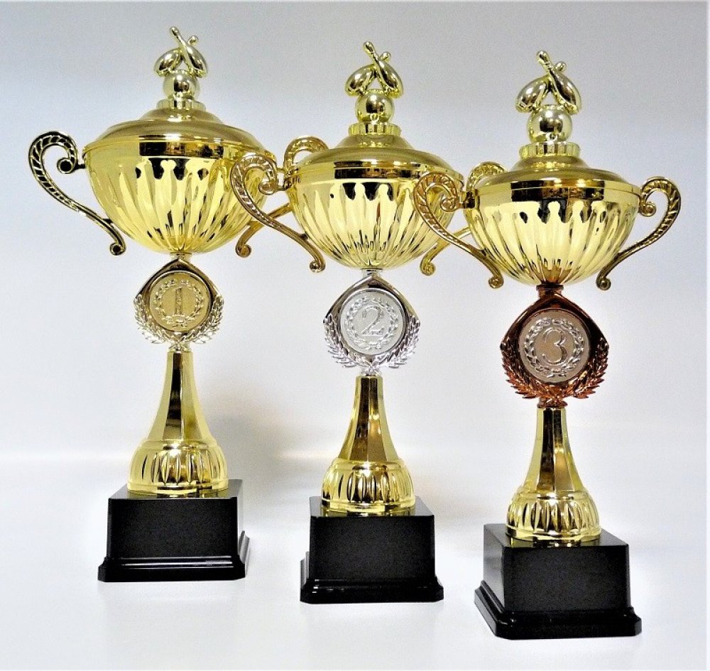 X41-P040. Poháry s pořadím viz. další foto. Výška pohárů včetně figurky je uvedena za lomítkem katalogového čísla. Průměr kalichů 16, 14, 12 cm. Při nákupu jedné sady (X41-P.../46/42/38cm)- text na štítky napište jen do rubriky "štítek na" např. O POHÁR PRIMÁTORA 10.10.2022 České Budějovice a do součtu štítků zadejte 3 !!! Ukázka možného zpracování štítku - viz.další foto. Pokud objednáváte ve vět...