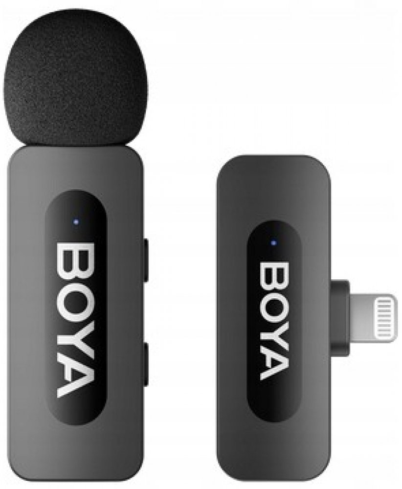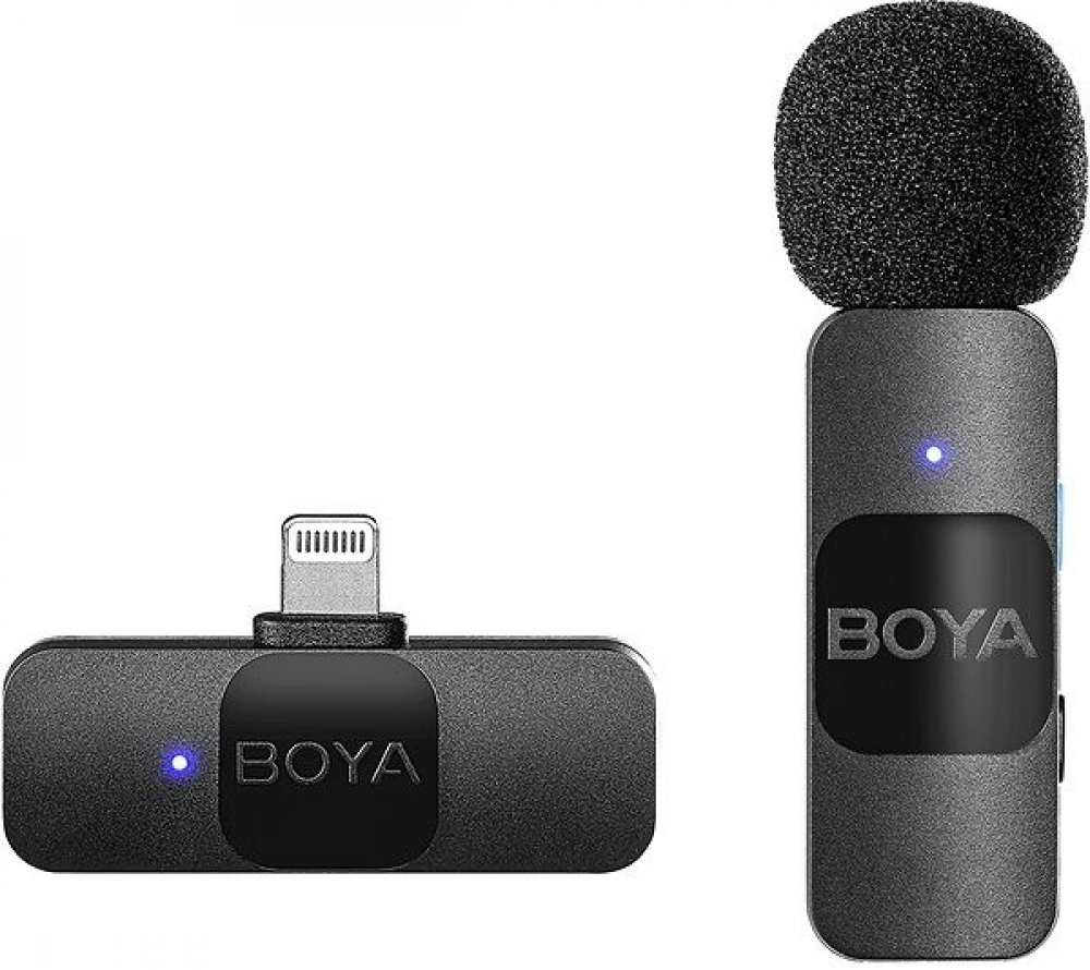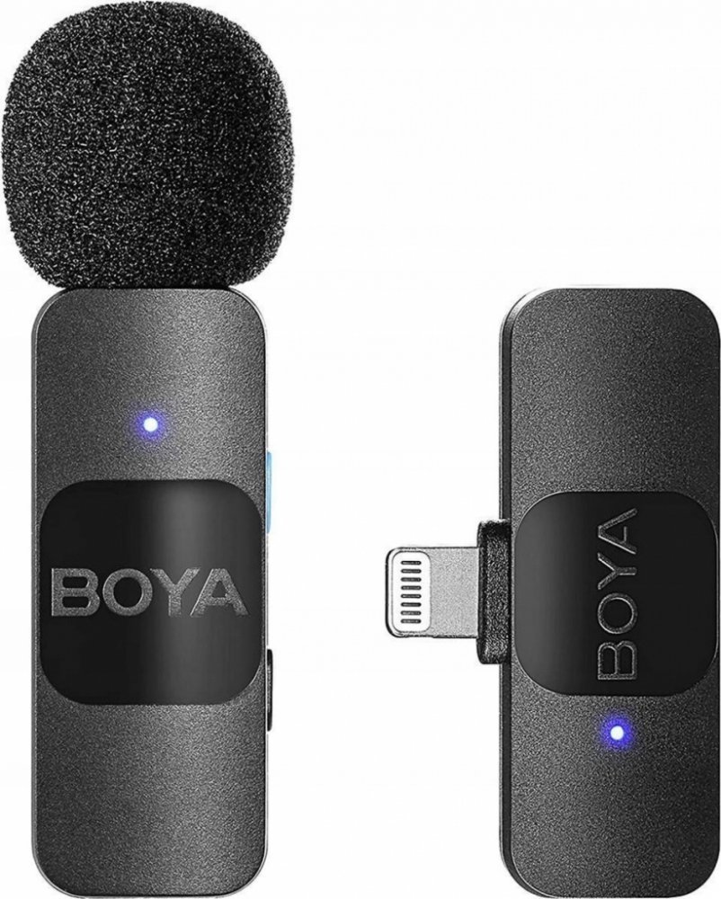 Boya BY-V1 V2.0 je ultrakompaktní bezdrátový mikrofon pracující na frekvenci 2,4 GHz, navržený pro zařízení Apple a iPad s portem Lightning. Sada obsahuje vysílač a přijímač, což umožňuje bezdrátový přenos zvuku na vzdálenost až 100 metrů.