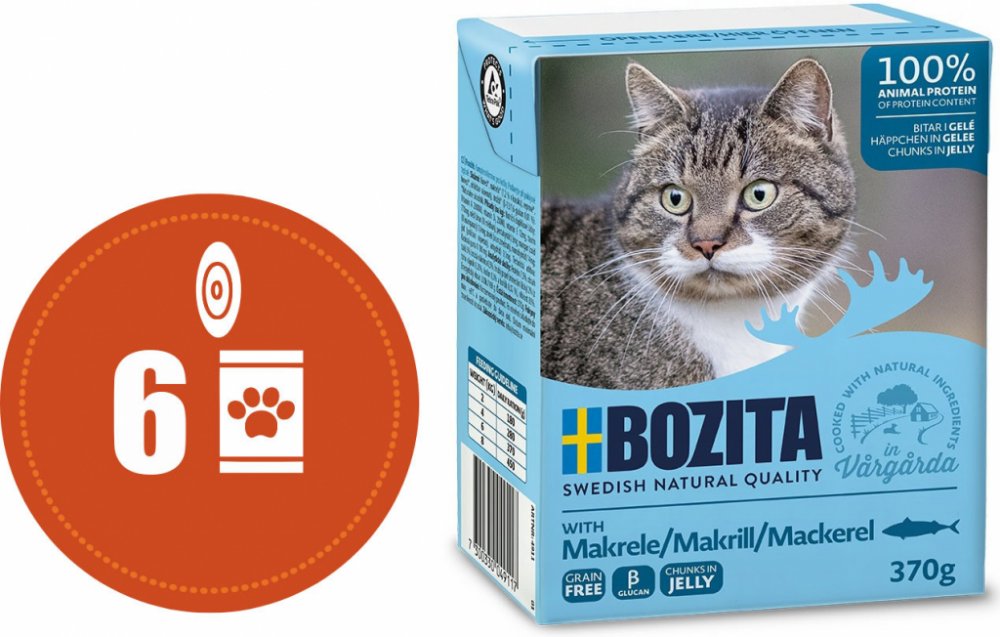Kousky masa v želé. Kompletní strava s 93 % čerstvého švédského masa vhodná od kotěte až po dospělou kočku, obsahuje všechny důležité vitamíny a minerály, které vaše kočka potřebuje. Obohaceno o MACROGARD - patentovaný přírodní imunizér k stimulaci bílých krvinek pro posílení obranyschopnosti vaší kočky. Vysoký obsah masa ve výši 93% Pouze čerstvé švédské maso Žádná umělá barviva, aromatické látky nebo konzervanty Macrogard - přírodní imunizér Neobsahuje cukr Nízkotučné Bezlepkové Přirozeně vysoký obsah taurinu pro kočičí oči a reprodukci Složení Kuřecí maso, makrela 7,2%, hovězí, vepřové maso, kvasnice (ß -1,3 / 1,6-glukany 0,01%).