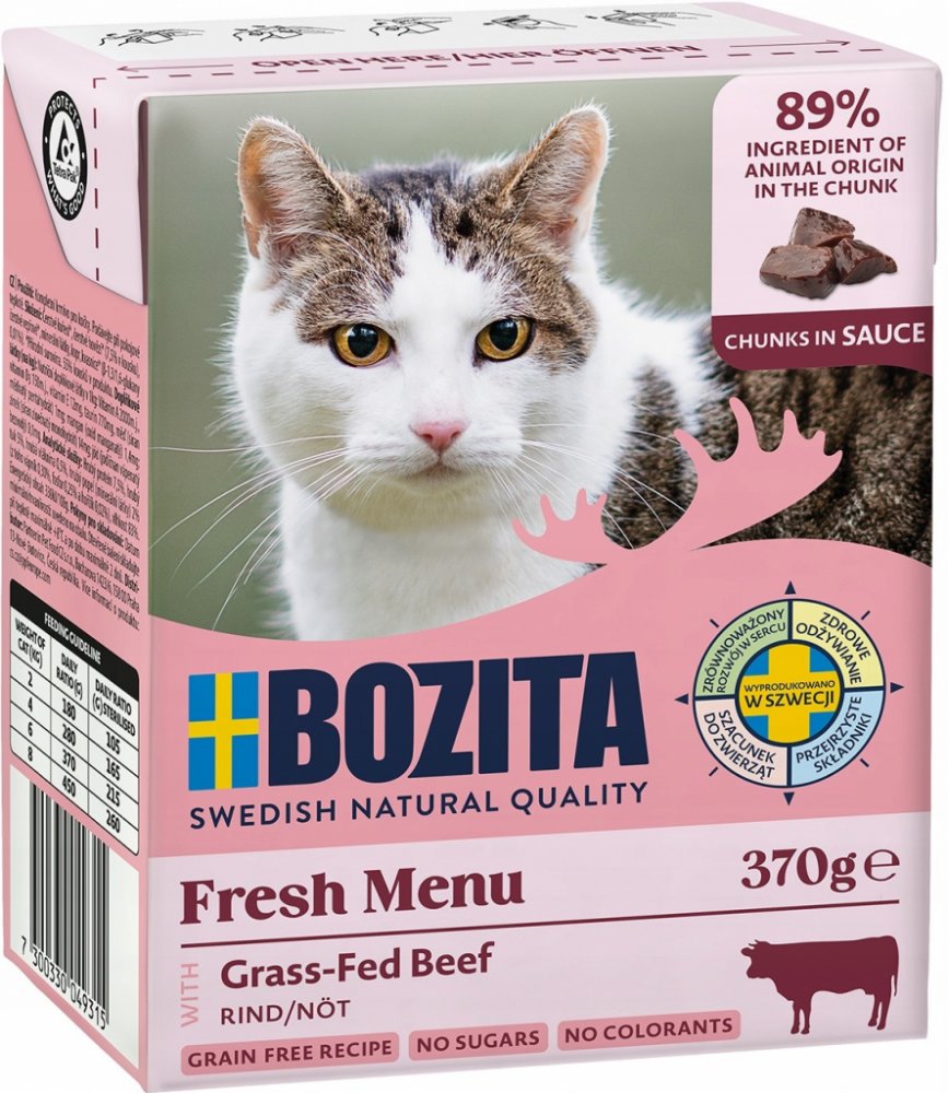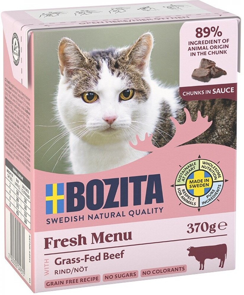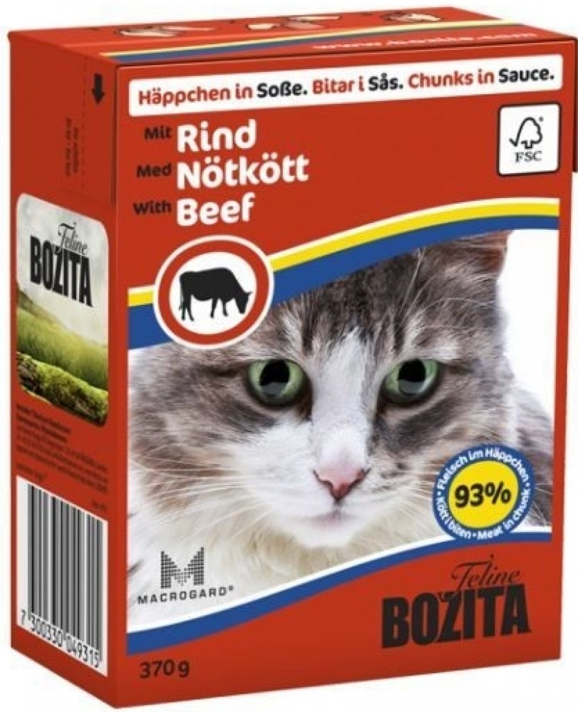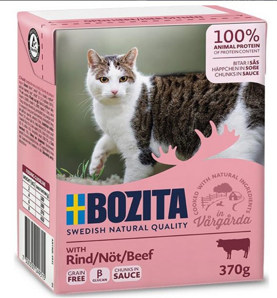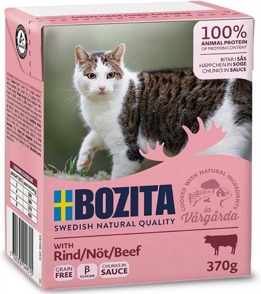 Bozita kousky v omáčce se zakládá na použití prvotřídních surovin, jako je švédské hovězí, vepřové a kuřecí maso či ryby. Vyvážené krmivo pro kočky obshuje Microgard, přírodní ß-Glukan, který posiluje imunitní systém Vaší kočky. Společně s bílými krvinkami je posilována také obranyschopnost.