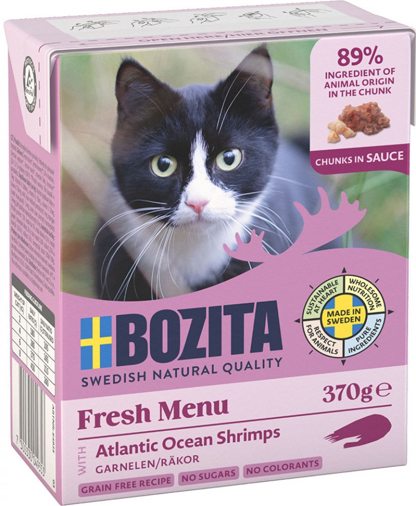 - Bozita Feline v omáčce 370g obsahuje všechny potřebné živiny, vitamíny a minerály
