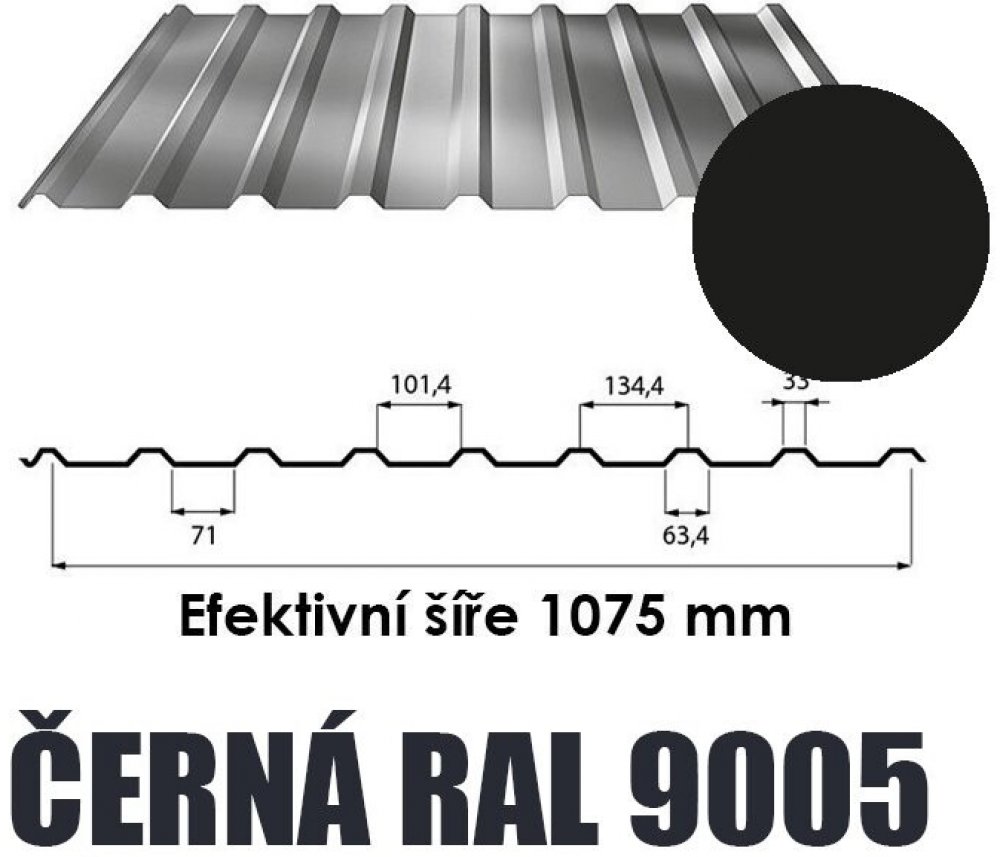 BP2 Trapézový plech T18 0,5 mm x 4,5 m černá