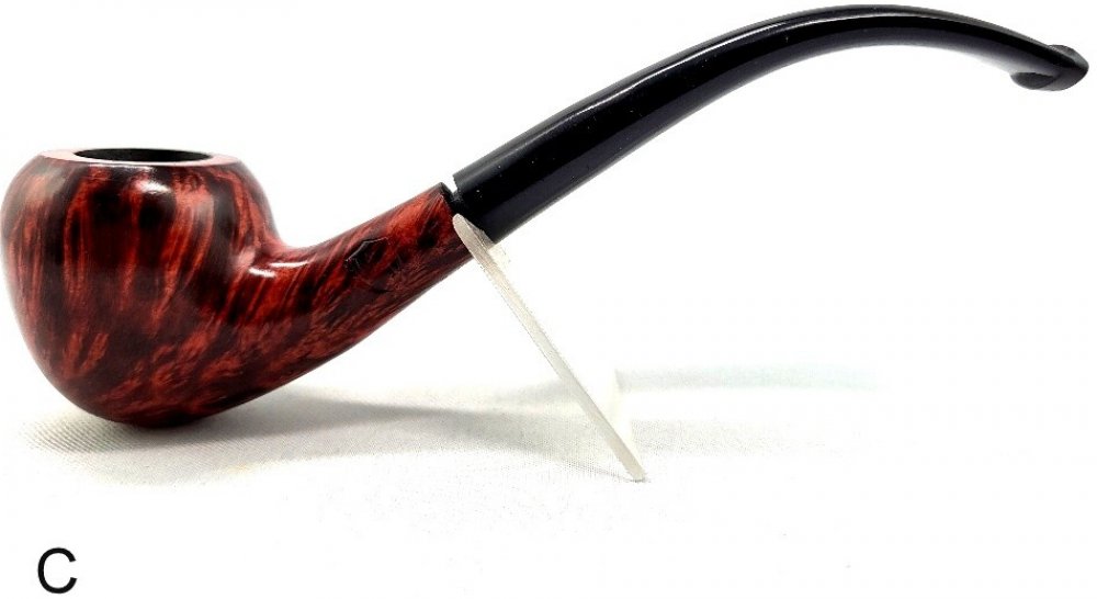 Drobná zahnutá dýmka s masivní hlavičkou a delším náustkem v hladkém provedení s chladičem.
