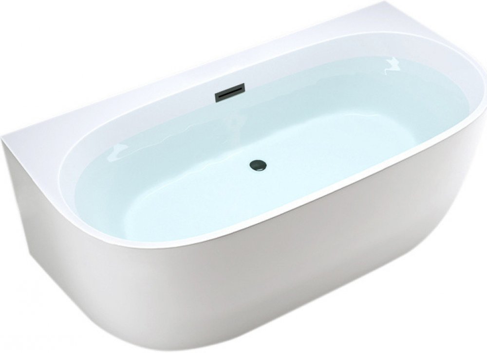 Volně stojící akrylátová vana ke stěně HYD-5190 NR526B 150x80 bílá, odtokový komplet černý