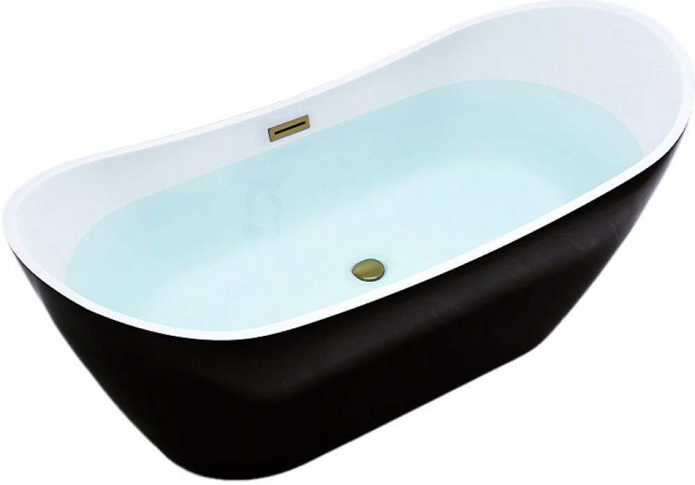 Volně stojící akrylátová vana HYD-RIC513C 170x75 bílá/černá, odtokový komplet černý
