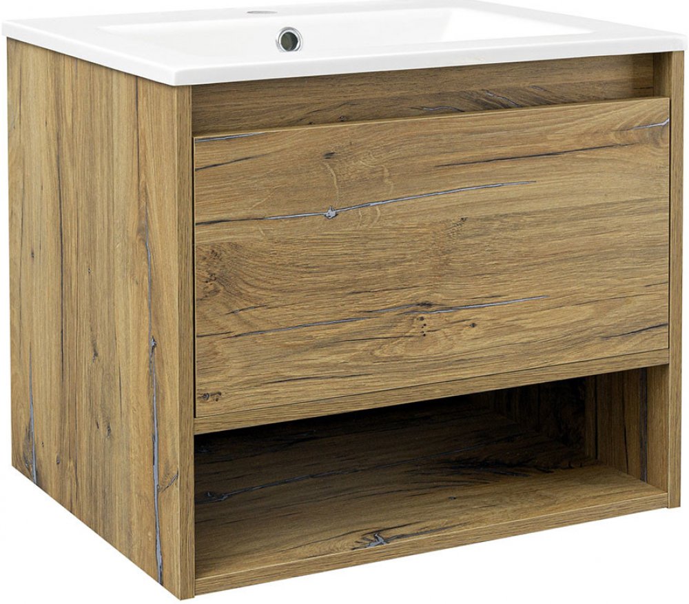 Skříňka s umyvadlem Mateo 60 je určena k zavěšení na zeď pomocí rektifikačních závěsů. Součástí skříňky je umyvadlo ze sanitární keramiky UM-ASU-60 s přepadem a otvorem pro montáž vodovodní baterie. Praktickým doplňkem je plastový organizér umístěný v zásuvce.