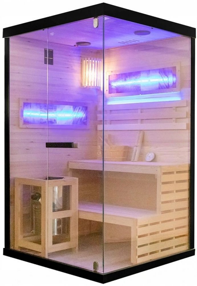 Dřevěná sedadla vyrobená z kanadského jedlovce zajišťují maximální pohodlí a trvanlivost po dlouhá léta. Sauna je navíc vybavena moderním LED osvětlením s barevnou terapií, které nejen vytváří příjemnou atmosféru, ale také napomáhá relaxaci a regeneraci. Součástí balení je také příslušenství, jako je vědro, naběračka, teploměr, přesýpací hodiny, modul Bluetooth a reproduktory, které vám umožní přehrávat oblíbenou hudbu a vytvořit dokonalou atmosféru. Mimořádnou atmosféru zajišťují také dvě velké solné lampy, které přispívají ke kráse a podporují zdraví dýchacích cest a stav pokožky.