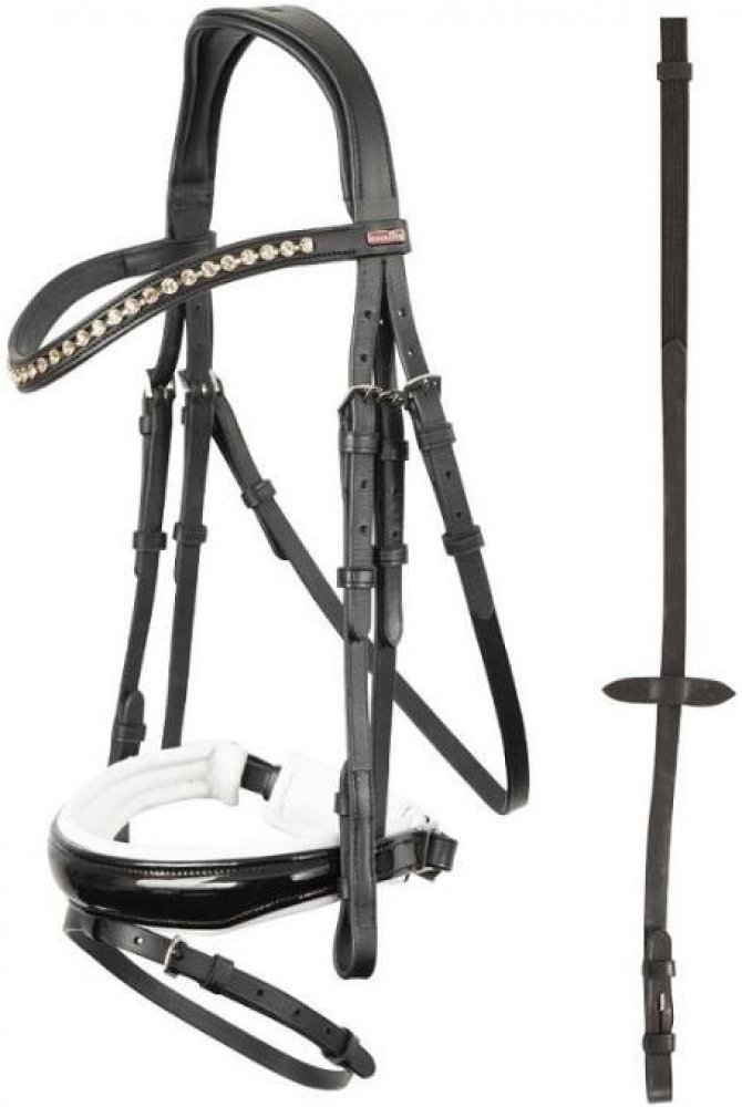 Uzdečka PREMIERE Brest se švédským nánosníkem černá/bílá PONY