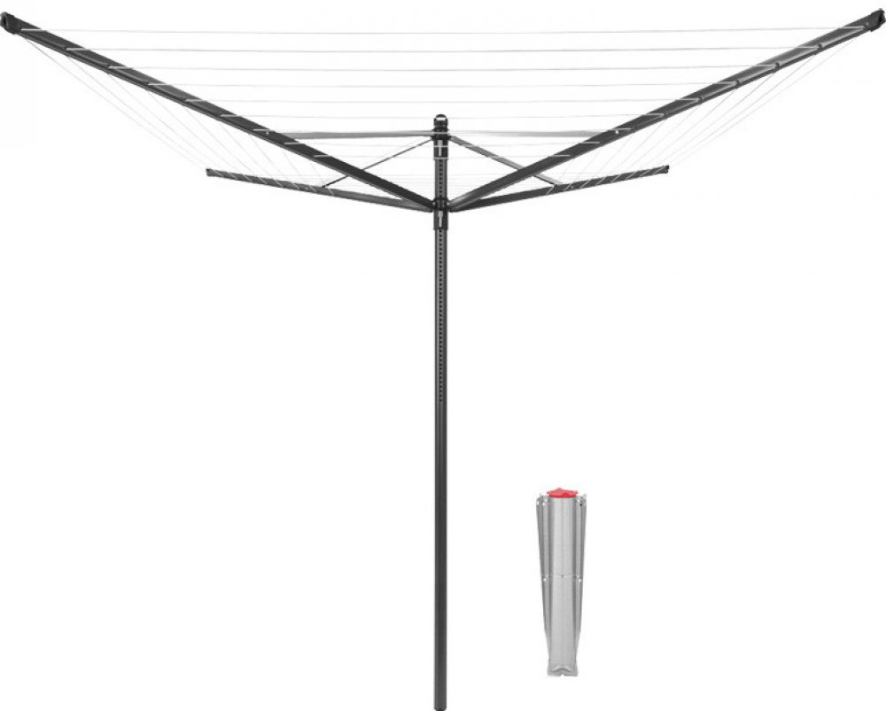 Venkovní sušák má snadné nastavení výšky od 129 do 187 cm, takže ho snadno přizpůsobíte své výšce. V nejnižší poloze je ideální třeba na větrání polštářů a ložního prádla. Šňůry jsou odolné proti prověšení a UV záření. Zároveň mají protiskluzový profil, takže udrží prádlo na svém místě. Ramena se lehce otáčejí, i když jsou plně naložena vlhkým prádlem a mají navíc otvory pro zavěšení oděvů na ramínku. Sušák má jednoduché otevírání díky snadno ovladatelnému deštníkovému systému. Poutko k zavěšení složeného sušáku umožňuje jeho snadné skladování.