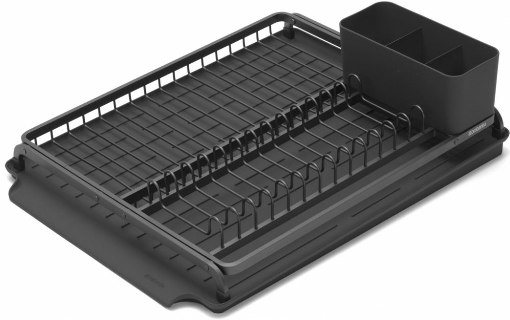 Tento odkapávač nádobí Brabantia má elegantní design a prostor až pro 13 talířů plus misky, příbory a sklenice. Má odnímatelný košík na příbory a také šikmou odkapávací misku, takže kapky stékají přímo do dřezu.