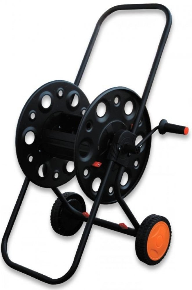 Vozík má stabilní a pevný kovový základnu a buben. Hlavní výhodou vozíku je dlouhá rukojeť, díky které lze vozík snadno přenášet. Kola s profilem zabraňují klouzání vozíku po trávě. Dodáváno bez hadice.