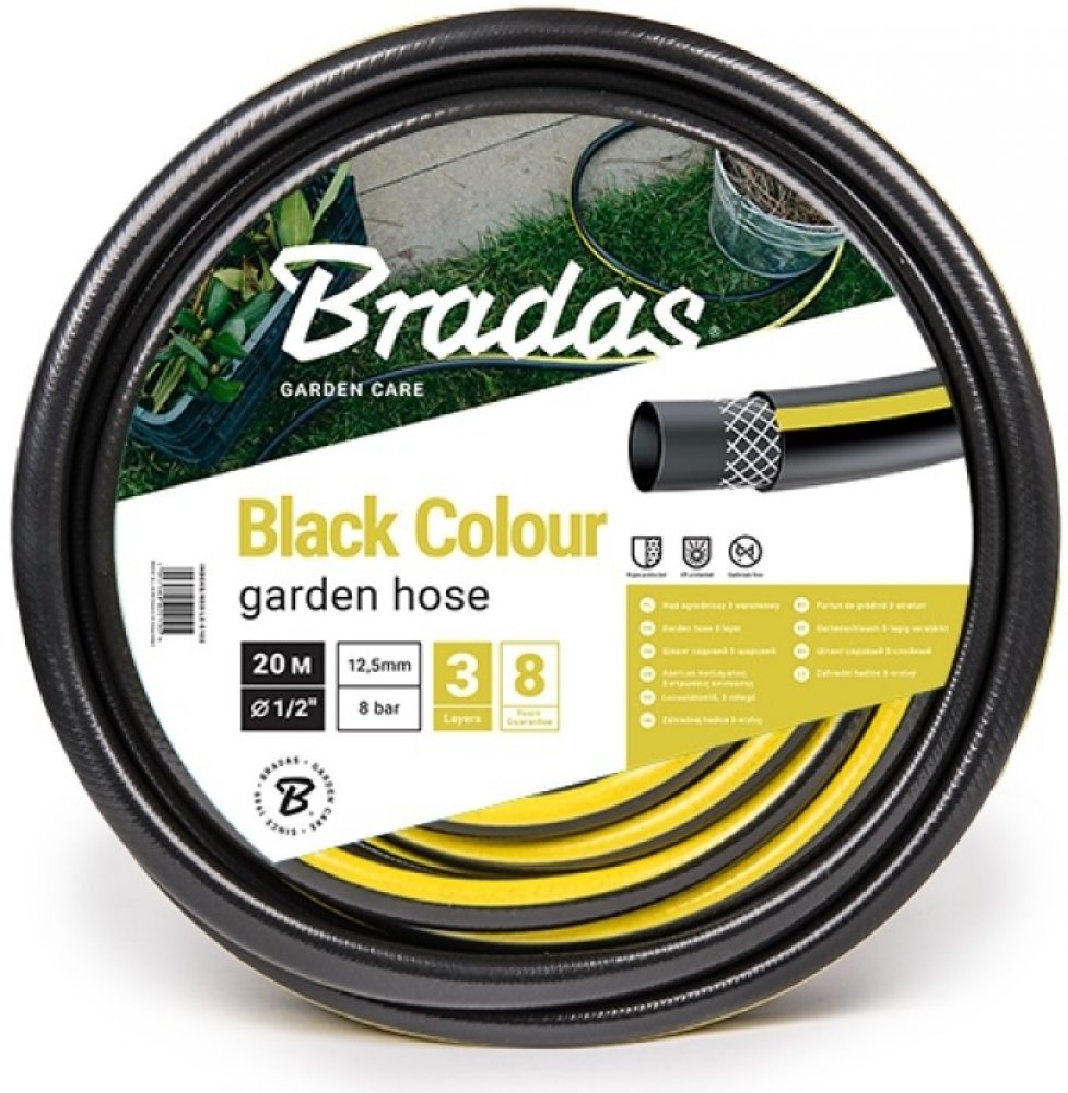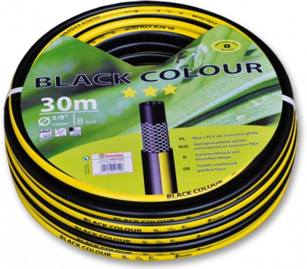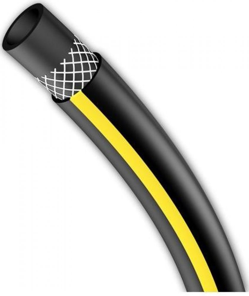 Černá zahradní hadice BLACK COLOUR je vybavena 3 vrstvami z měkčeného PVC a navíc vyztužena syntetickým křížovým opletem. Odolává UV záření a usazujícím se řasám. Lze ji využít pro zavlažování zahrad a zemědělských půd.