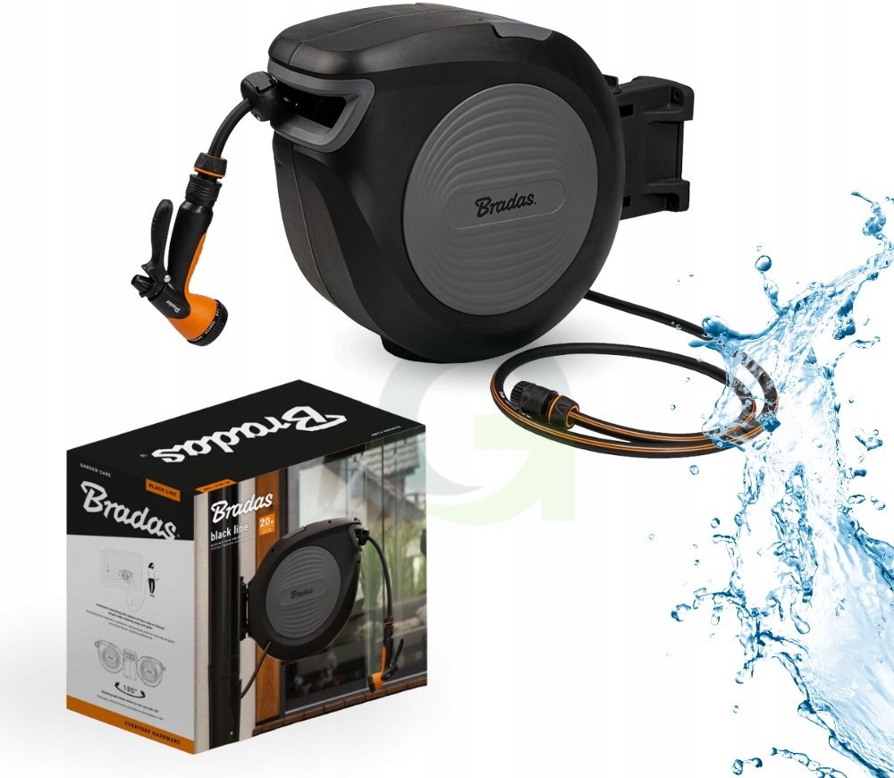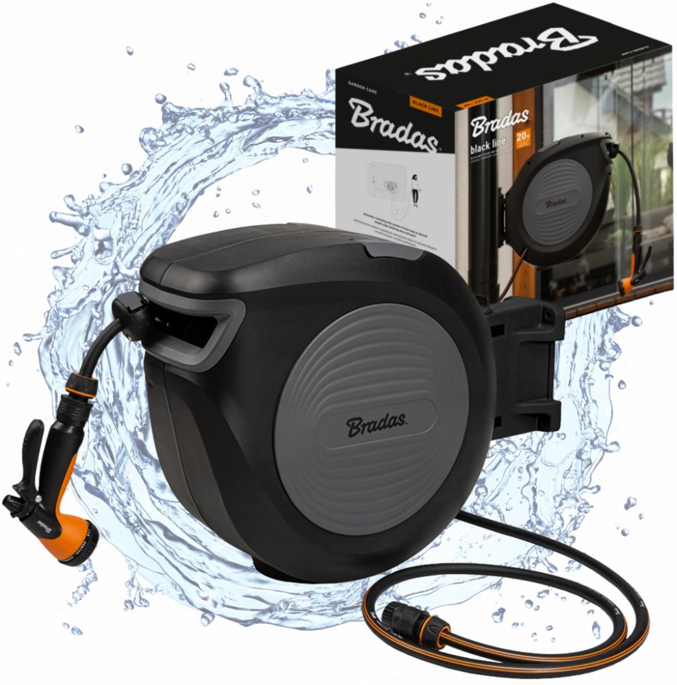 - Automatický naviják na hadici s 20m hadicí 1/2" Bradas Black Line pro snadné skladování a manipulaci