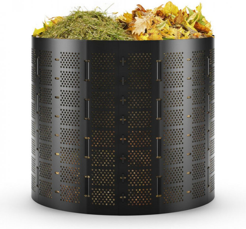 Praktický a odolný kompostér COMPOSTBIN 105 o objemu 800 l je ideální pro kompostování kuchyňského odpadu, listí nebo trávy. Je vyroben z kvalitního HDPE materiálu, který odolává UV záření a rozličným povětrnostním podmínkám, což zaručuje dlouhou životnost.Praktický a odolný kompostér COMPOSTBIN 105 o objemu 800 l je ideální pro kompostování kuchyňského odpadu, listí nebo trávy. Je vyroben z kvalitního HDPE materiálu, který odolává UV záření a rozličným povětrnostním podmínkám, což zaručuje dlouhou životnost.Technické údaje:Rozměry kompostéru: 90 x 335 cmMaximální průměr po sestavení: 105 cmTloušťka těla kompostéru: 1,5 mmPrůměr ventilačních otvorů: 1 cmPrůměr podpůrných kolíků: 4 mmRozteč montážních otvorů: každých 9 cm svisle, každých 15 cm vodorovněBarva: černáVlastnosti produktu:Odolný vůči UV zářeníDlouhá životnost a odolnost vůči povětrnostním podmínkámPodpůrné kolíky z vláknového sklaMožnost nastavení průměru kompostéruMontáž bez nářadíJednoduché čištěníVentilační otvory zabezpečují optimální průtok vzduchu a správný proces fermentaceSada obsahuje:1 x tělo kompostéru 90 x 335 cm8 x podpůrné kolíky16 x montážních svorek