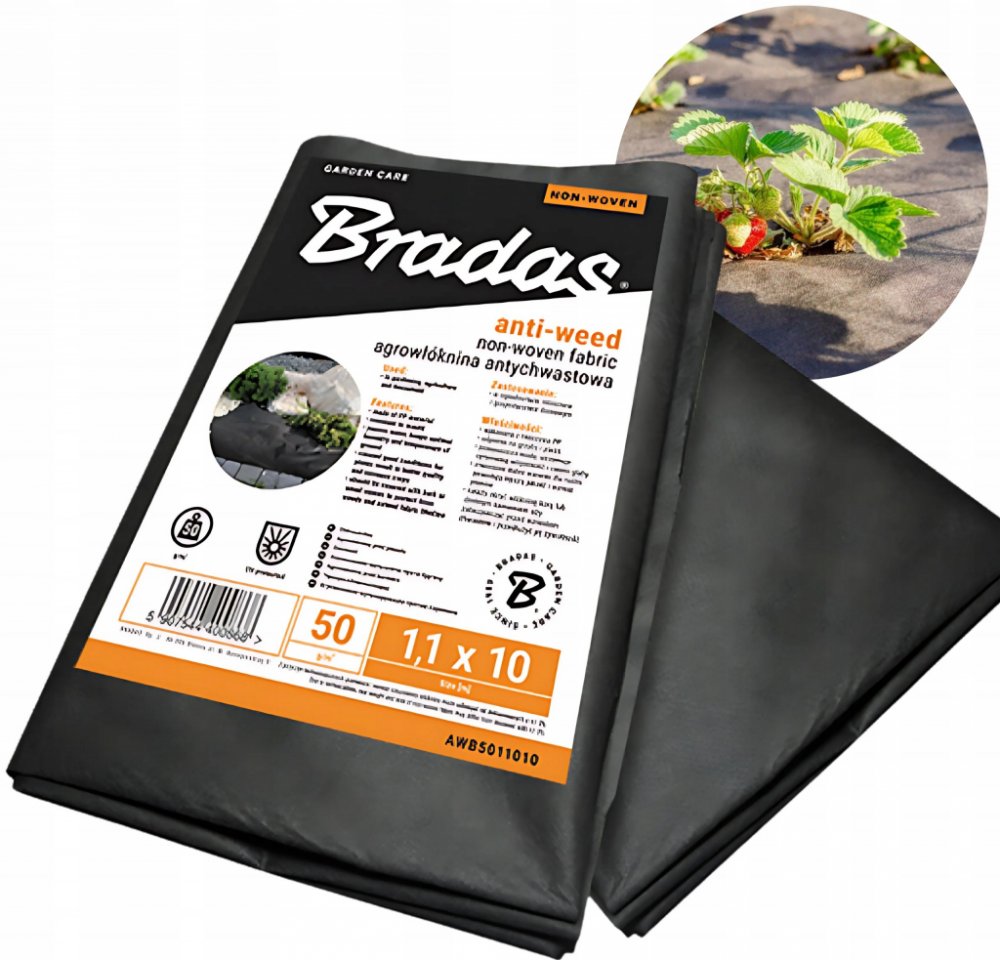 Netkaná mulčovací textilie BRADAS je určena jako ochranný prostředek proti růstu plevelu při pěstování rostlin a plodin nebo jako podklad pod mulčovací kůru a dekorativní kamínky. Tato pevná a UV odolná textilie udržuje správnou vlhkost a teplotu půdy, čímž vytváří kvalitní podmínky pro pěstování rostlin a bohatou úrodu plodin. Lze ji využít v zahradách, zahradnictvích či zemědělských půdách.