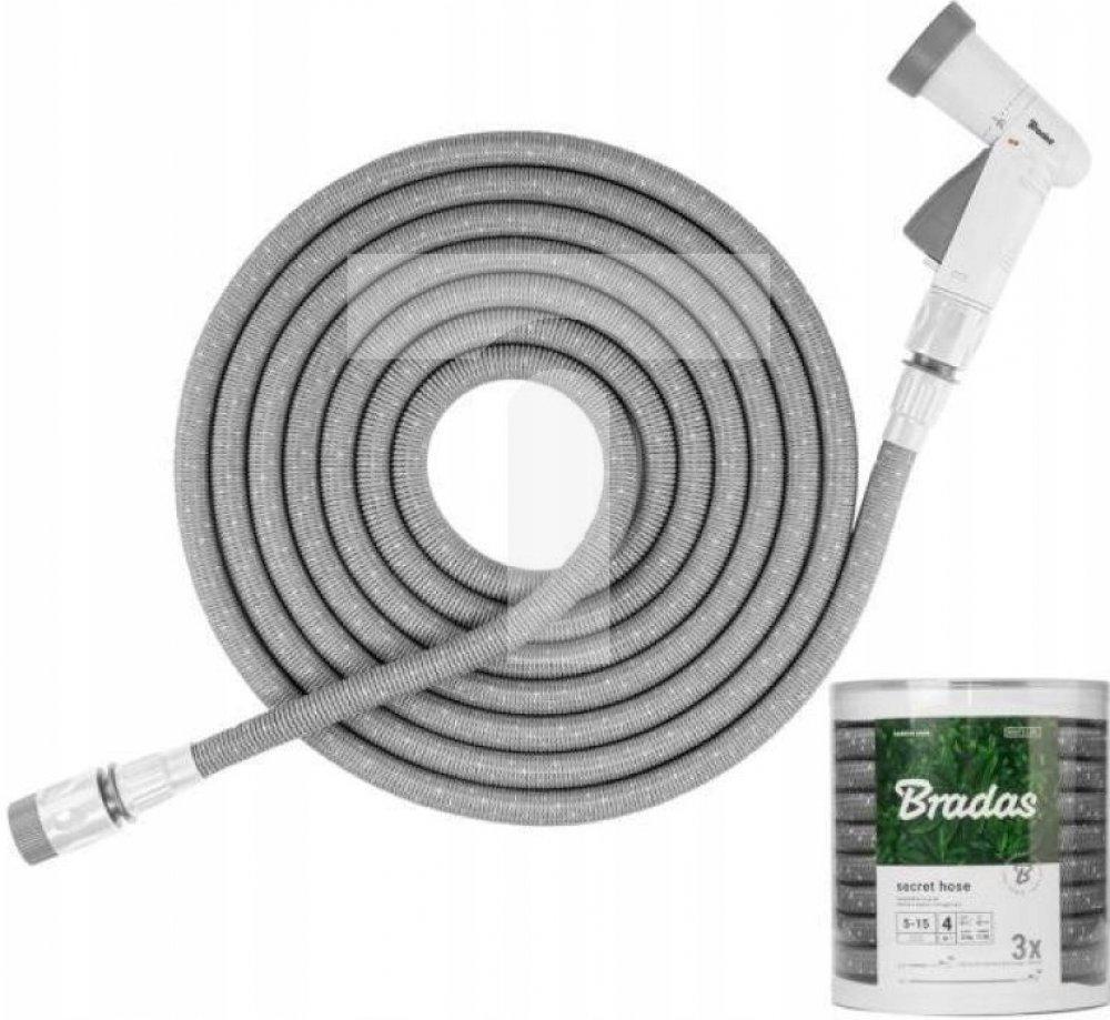Sada obsahuje : - 4funkční pistole - zahradní hadice 5-15m - 3/4" připojení na kohoutek - 2x rychlospojka