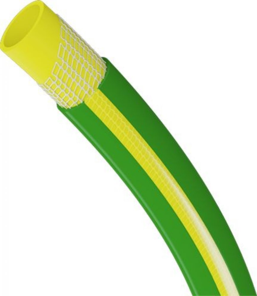 5-vrstvá zahradní hadice, vyztužená. Vyrobena z měkčeného PVC se zvýšenou odolností proti tlaku vody s minimalizaci zkroucení hadice.