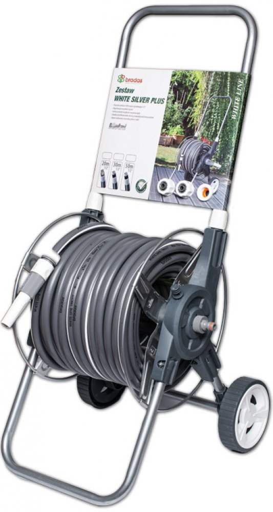 Exkluzivní sada hadice s příslušenstvím a kvalitního vozíku "WHITE SILVER PLUS" 30m.5vrstvá zavlažovací hadice vyztužená speciálním polyesterovým opletením TRICOT se zvýšenou odolností proti tlaku vody. Vyrobeno z nové generace PVC materiálu. Neobsahuje žádné toxické látky. Je odolná vůči UV záření a flexibilní i při nízkých teplotách. Vhodná pro profesionální použití.1. Vozík kovový WHITE SILVER ...