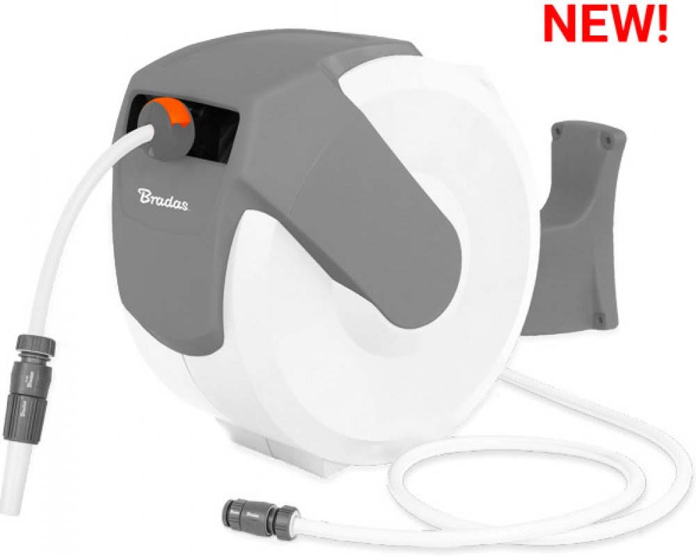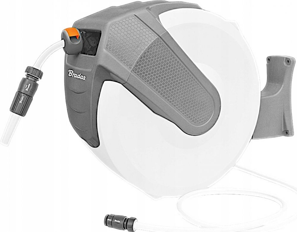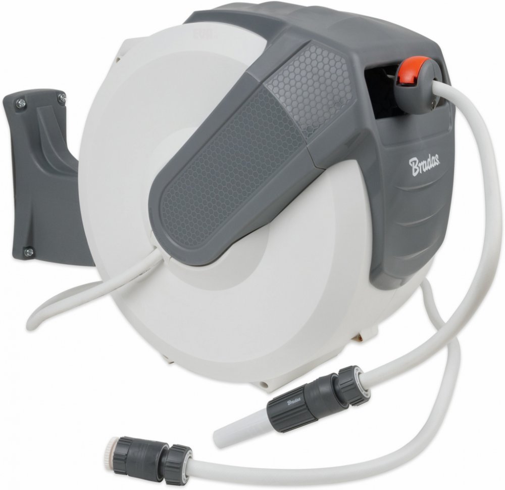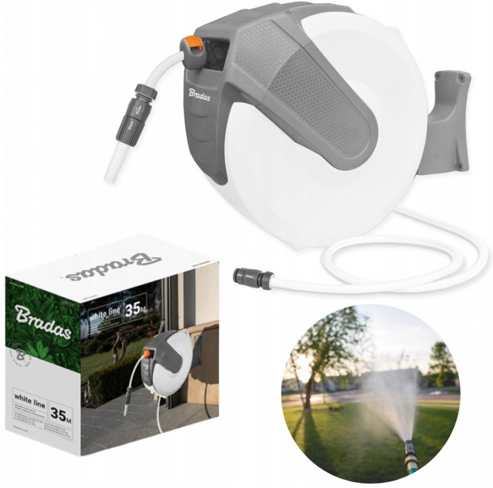 Automatický naviják s hadicí je určený k zavlažování menších ploch nebo zalévání rostlin. Silná vnitřní pružina z nerezové oceli. Otočný nástěnný držák. Sada vybavená zahradní hadicí a příslušenstvím.