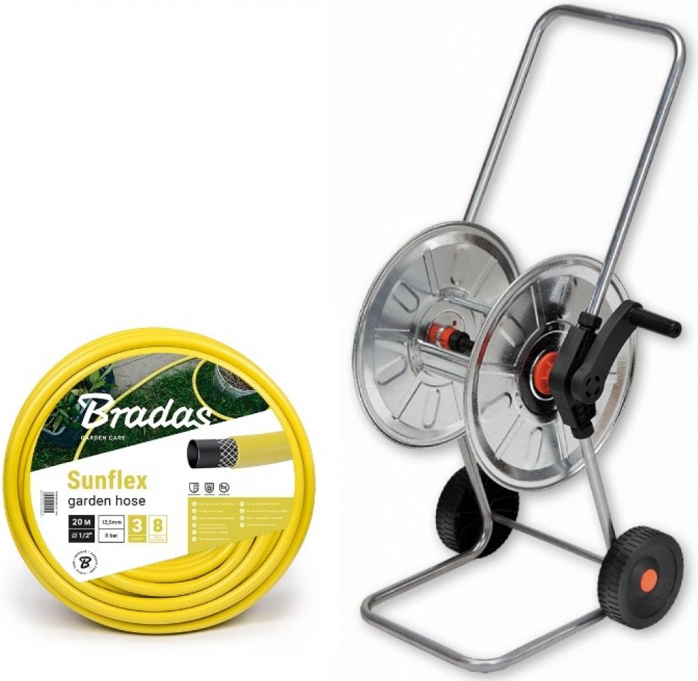 BRADAS AG210 vozík na hadici 1/2“ délky až 50m. Vyroben z pozinkované konstrukce na velkých kolech. Prodložená rukojeť. Hadicový naviják zahradní ZINCATO s možnosti uložení až 50 m 1/2 \"hadici. Hlavní předností navijáků je dlouhá rukojeť, která usnadňuje lepší manipulaci. Připojení: úhlová hadice zabraňuje ohnutí nebo kroucení při navíjení zapnutí a vypnutí. Vlastnosti: Stabilní a odolná základna. Pohodlná rukojeť. Velká a snadno točitelná kola se speciálním profilem, aby se zabránilo uklouzování.