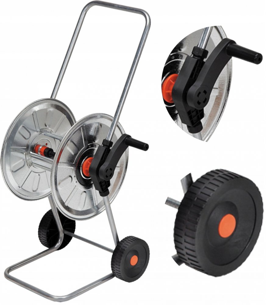 BRADAS AG210 vozík na hadici 1/2“ délky až 50m. Vyroben z pozinkované konstrukce na velkých kolech. Prodložená rukojeť. Hadicový naviják zahradní ZINCATO s možnosti uložení až 50 m 1/2 \"hadici. Hlavní předností navijáků je dlouhá rukojeť, která usnadňuje lepší manipulaci. Připojení: úhlová hadice zabraňuje ohnutí nebo kroucení při navíjení zapnutí a vypnutí. Vlastnosti: Stabilní a odolná základna...