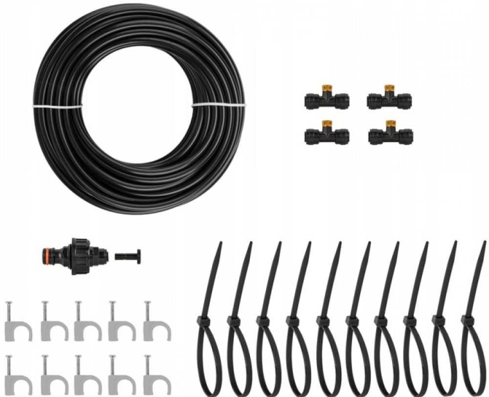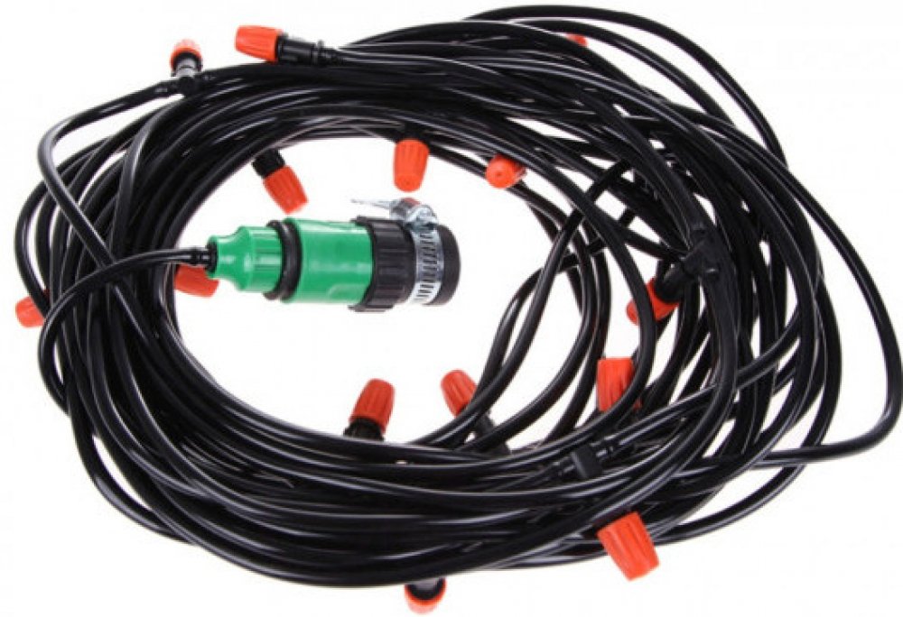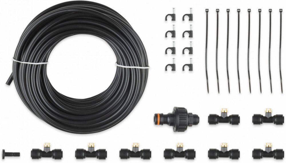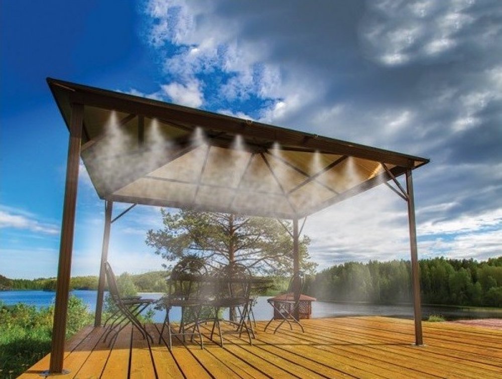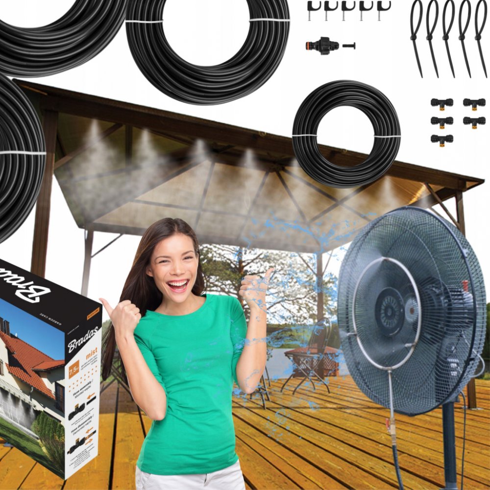 Zahradní vodní mlha, která vás příjemně ochladí na terase vašeho domu, restaurace či kavárny, nebo na vaší zahradě. Díky systému pěti nerezových nastavitelných trysek ochladíte vzduch v parném létě o 10°C až 12°C. Připojení je možné přímo na zahradní hadici. Montáž i údržba je velice snadná.
