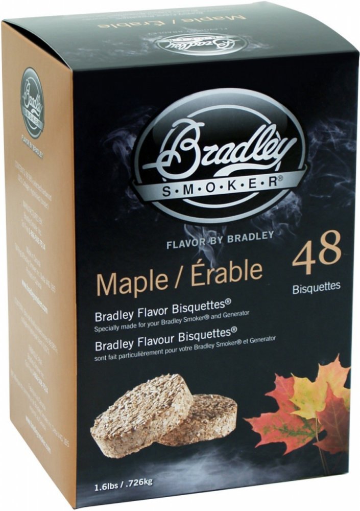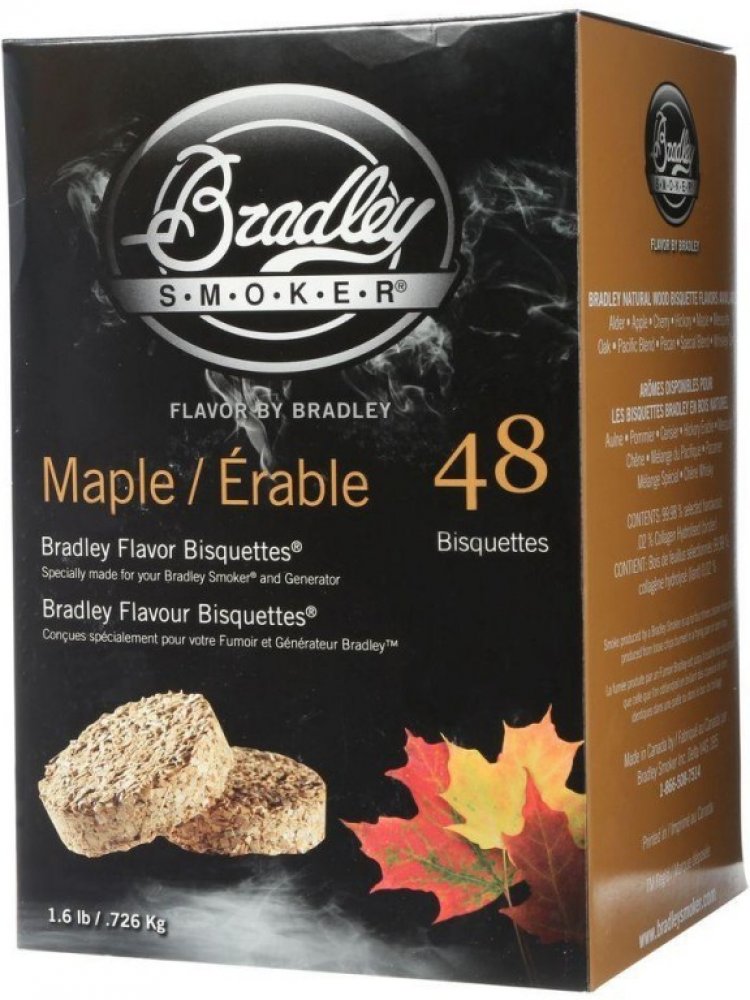 Tajemství udíren Bradley spočívá v chuti schované v dřevěných briketkách Bradley. Při jejich výrobě jsou použity piliny z tvrdých druhů dřeva. Tyto piliny jsou slisovány dohromady za správné hustoty při přesně kontrolovaném tlaku. Chuť uzených pokrmů se výrazně liší podle toho, který druh dřeva byl použit. Javorové briketky dodají silnou a výraznou chuť, která se hodí zejména k uzení mořských plod...