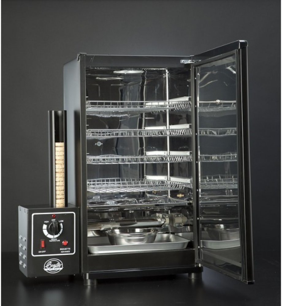 Bradley Smoker je revoluční přenosná venkovní udírna pro pomalé uzení teplým nebo horkým kouřem s extra technologií pro domácnost!