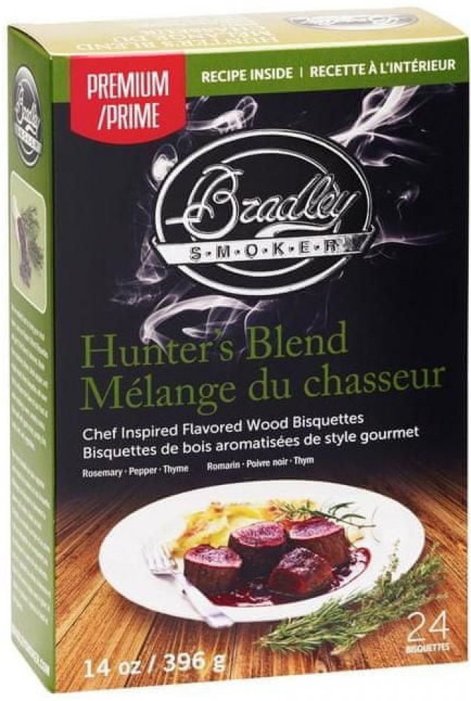 Tajemství udíren BRADLEY spočívá v chuti schované v dřevěných briketkách BRADLEY. Při jejich výrobě jsou použity piliny z tvrdých druhů dřeva. Tyto piliny jsou slisovány dohromady za správné hustoty při přesně kontrolovaném tlaku bez jakýchkoli pojidel. Chuť uzených pokrmů se výrazně liší podle toho, který druh dřeva byl použit. Brikety Hunters Blend dávají vašemu jídlu chuť, kterou si zaslouží. Smíchali jsme rozmarýn, tymián a černou papriku s našimi aromatickými javorovými dřevěnými briketami, které vám přinesou dřevěnou vůni a chuť. Tyto brikety se hodí ke zvěřině ale i k drůbežímu, rybímu, jehněčímu, hovězímu masu a zelenině. Balení 48 briketek stačí v udírnách Bradley na 16 hodin produkce kouře.