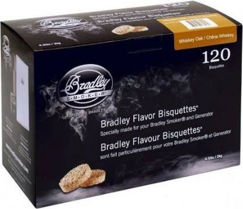 Tajemství udíren Bradley spočívá v chuti schované v dřevěných briketkách Bradley. Při jejich výrobě jsou použity piliny z tvrdých druhů dřeva. Tyto piliny jsou slisovány dohromady za správné hustoty při přesně kontrolovaném tlaku. Chuť uzených pokrmů se výrazně liší podle toho, který druh dřeva byl použit. Briketky Whiskey Dub jsou vyrobené z dubových sudů od whisky, mají bohatou chuť a hodí se k uzení zvěřiny, hovězího a vepřového masa. Klíčové vlastnosti * bohatá chuť * z prvotřídního dřeva * uzení bez nežádoucích plynů a zplodin Princip uzení v udírně Bradley Udírna Bradley spaluje jednu briketu po dobu 20 minut. Produkuje přitom čistou chuť dřeva v chladném kouři. Jakmile je jedna briketa douzena, generátor kouře ji automaticky odsune do misky s vodou, čímž zabrání nežádoucímu přepalování popele. Následně si ze zásobníku natáhne další briketu, čímž automaticky udržuje proces uzení v chodu. Při spalování briket nevzniká hoření, a tím je zachována ryzí chuť vybraného dřeva. Pokud by došlo k vyšší teplotě spalování dřeva, začaly by vznikat nežádoucí plyny a zplodiny z hořících pryskyřic. K tomuto ovšem nedochází v udírnách Bradley, takže nemusíte mít obavu, že by tyto nežádoucí jevy narušili dokonalou chuť vašich uzených pokrmů. Brikety jsou balené v krabicích po 48 kusech na16 hodin kouře nebo po 120 kusech na 40 hodin kouře.