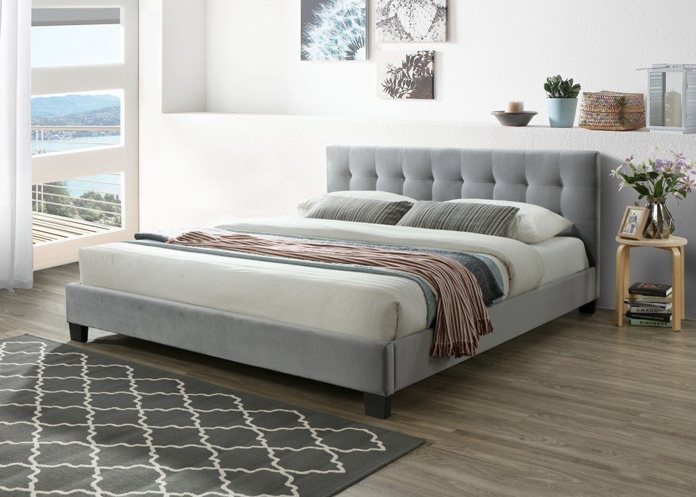 - čalouněná ve světle šedé moderní látce (semiš)