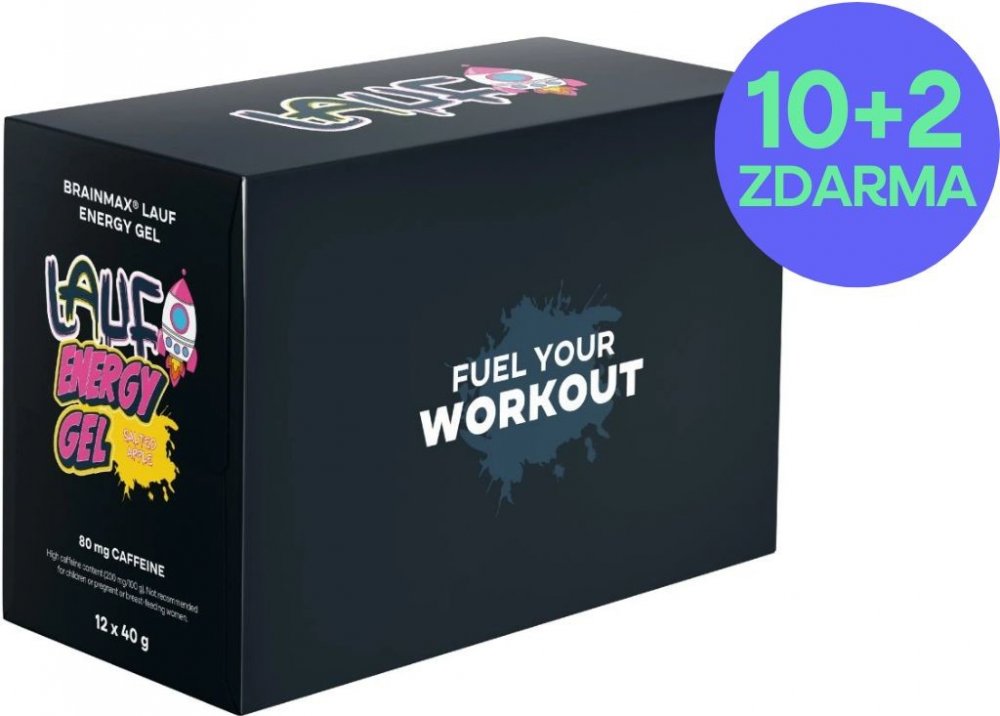 BRAINMAX LAUF Energy Gel Slané jablko s kofeinem 12 x 40 g BrainMax Lauf Energy Gel je navržen tak, aby okamžitě poskytl tělu energii, udržoval ji stabilní a nezatěžoval žaludek, což je ideální pro jakýkoli trénink nebo závod.