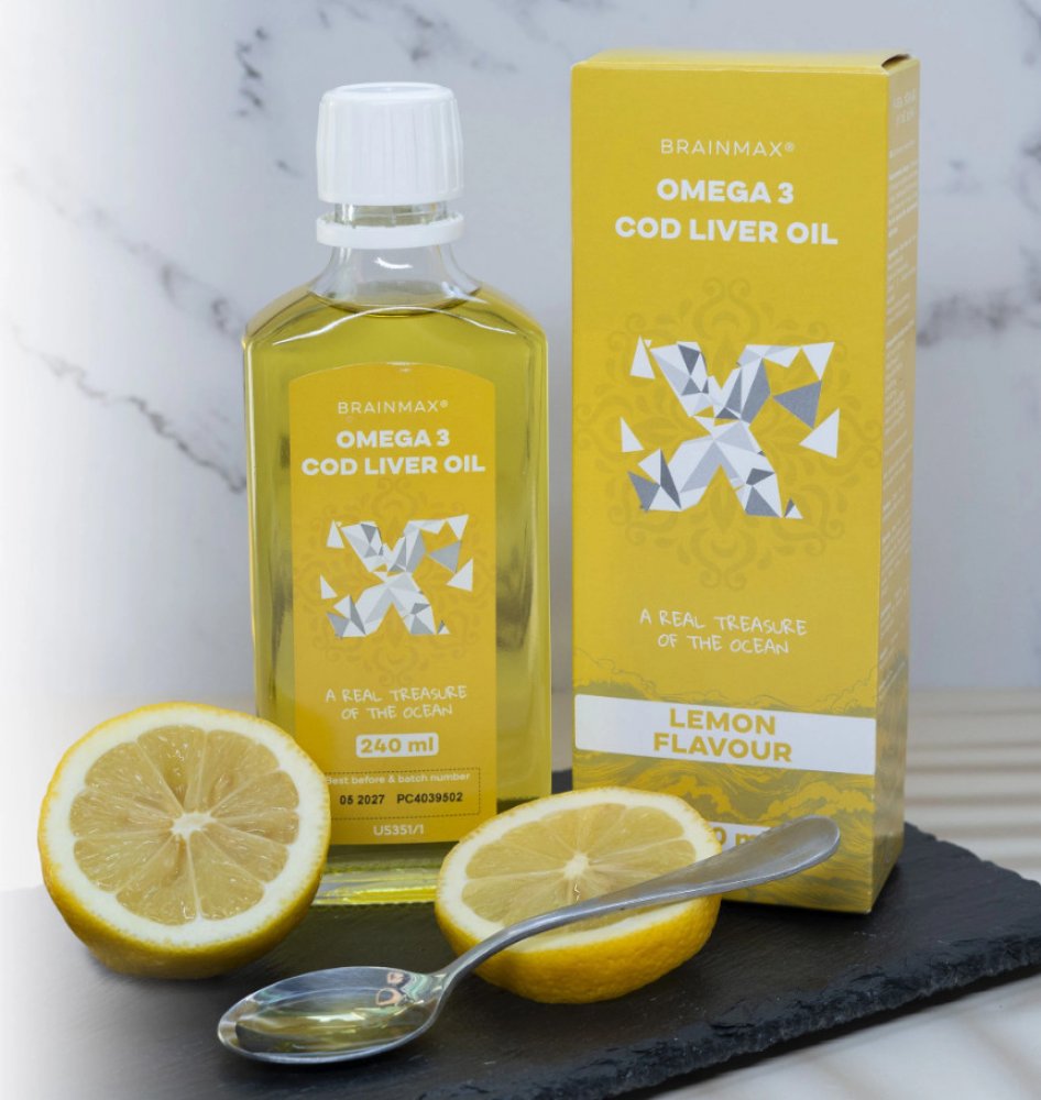 BrainMax tekuté 240 ml srdce unisex 500 g BrainMax pro všechny perorální citron Island omega-3 mastné kyseliny srdce a cévy 24 2160.0 mg Kdykoliv 10 ml za den Chladné + suché + tmavé místo