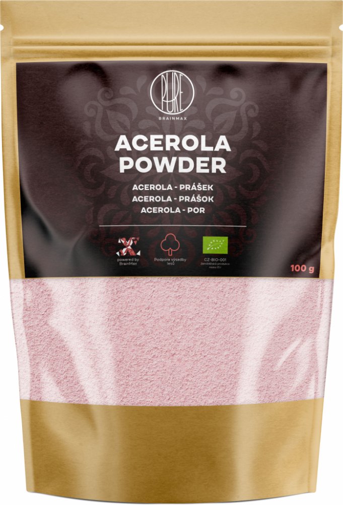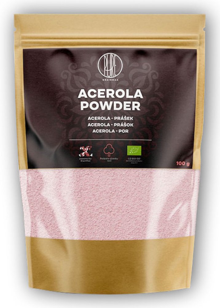 BrainMax Pure sypké prášky 100 ml imunita unisex 100 g BrainMax Pure pro dospělé perorální bez příchutě Brazílie acerola imunita a obecné zdraví Kdykoliv ½–1 čajové lžičky 1–2× za den Suché místo + pokojová teplota